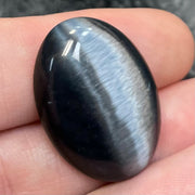 1 Vintage Midnight Blue Cats Eye Oval Glass Cabochon