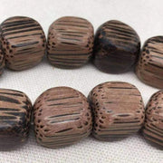 10 Vintage Brown Striped Wood Cube Beads