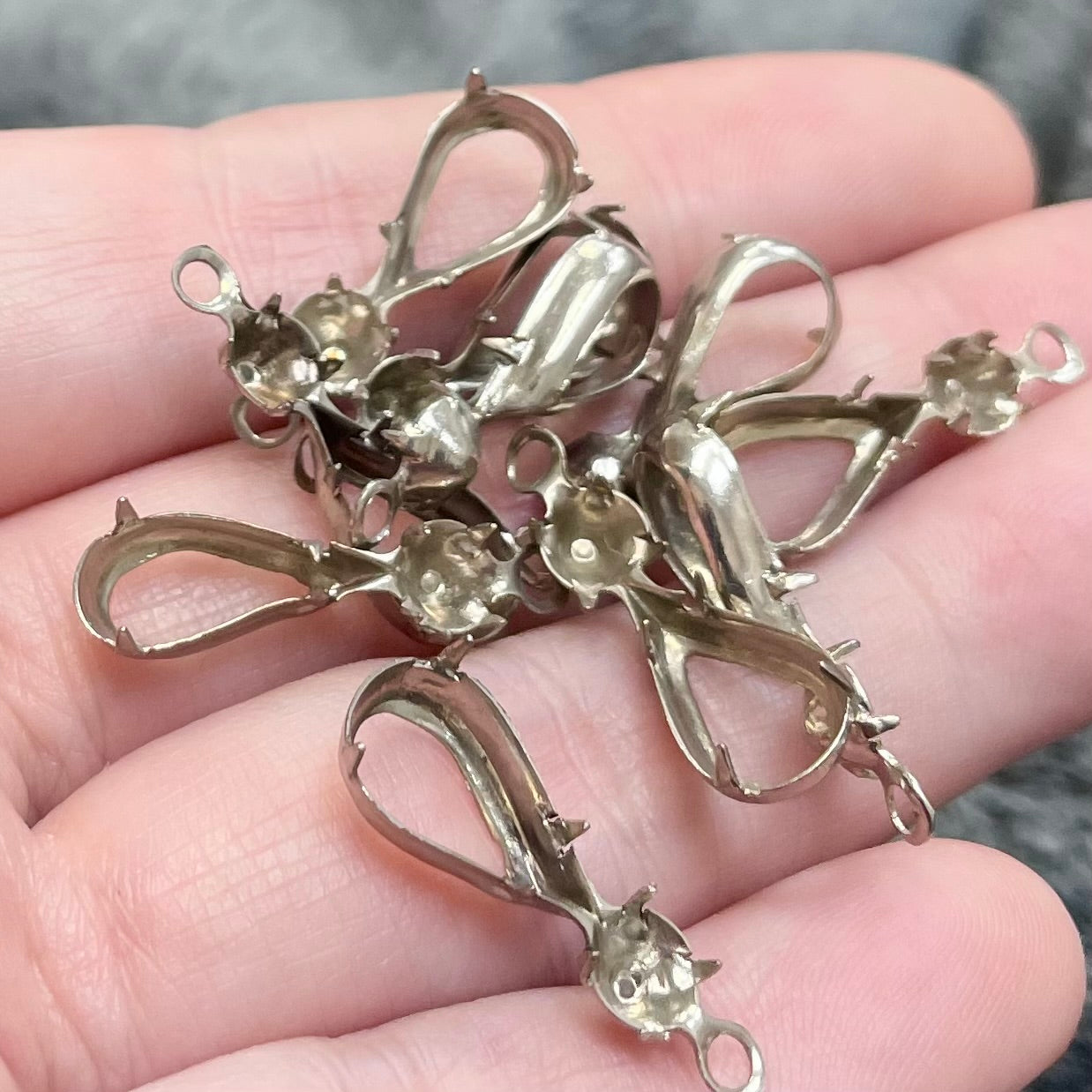 10 Vintage Silver Plated Open Pear Prong Metal Settings