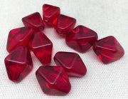 12 Vintage Translucent Siam Red German Diamond Glass Beads, 13x8mm.