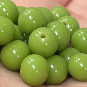 20 Vintage Green Olive Japan Round Glass Beads