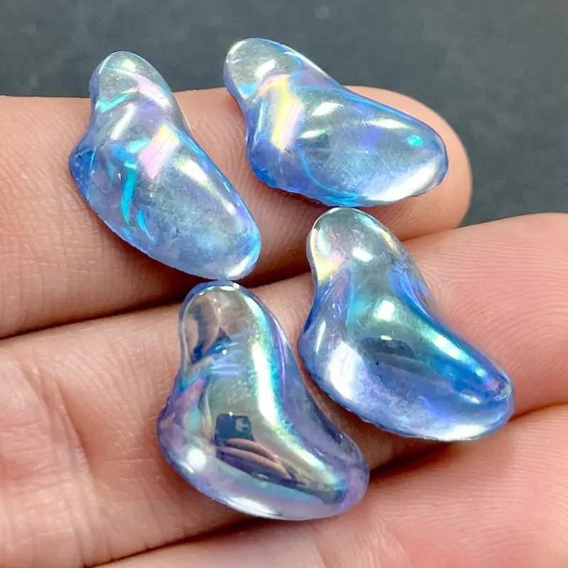 4 Vintage Blue German Iridescent Baroque Glass Cabochons