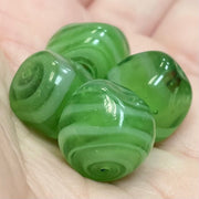 4 Vintage Green Japan Striped Baroque Glass Beads