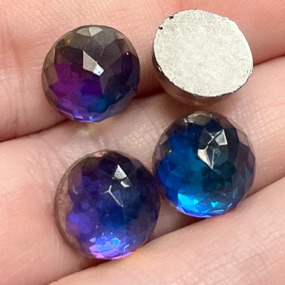 4 Vintage Heliotrope Faceted Round Glass Cabochons