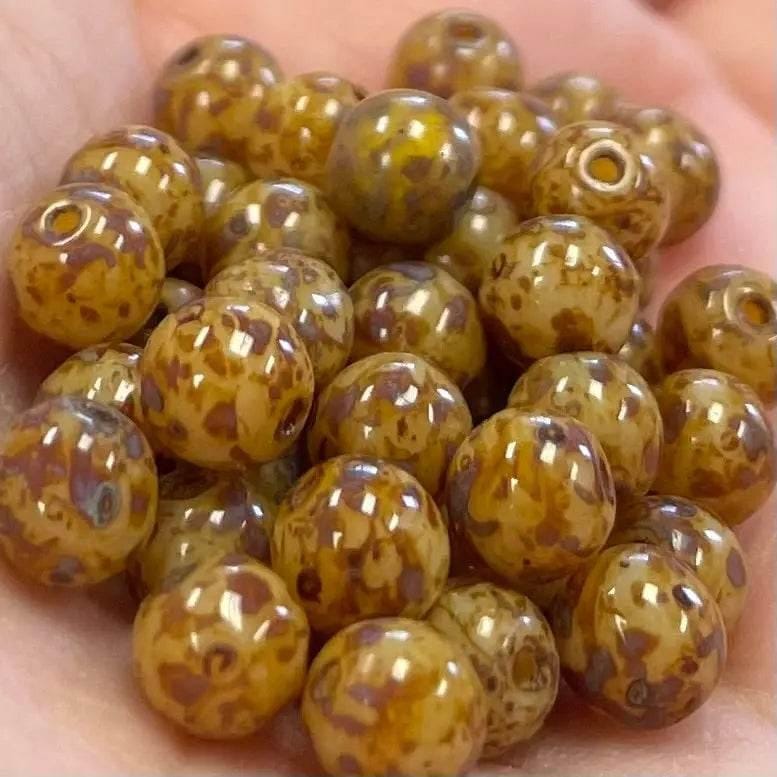 100 Golden Brown Czech Picasso Round Glass Beads