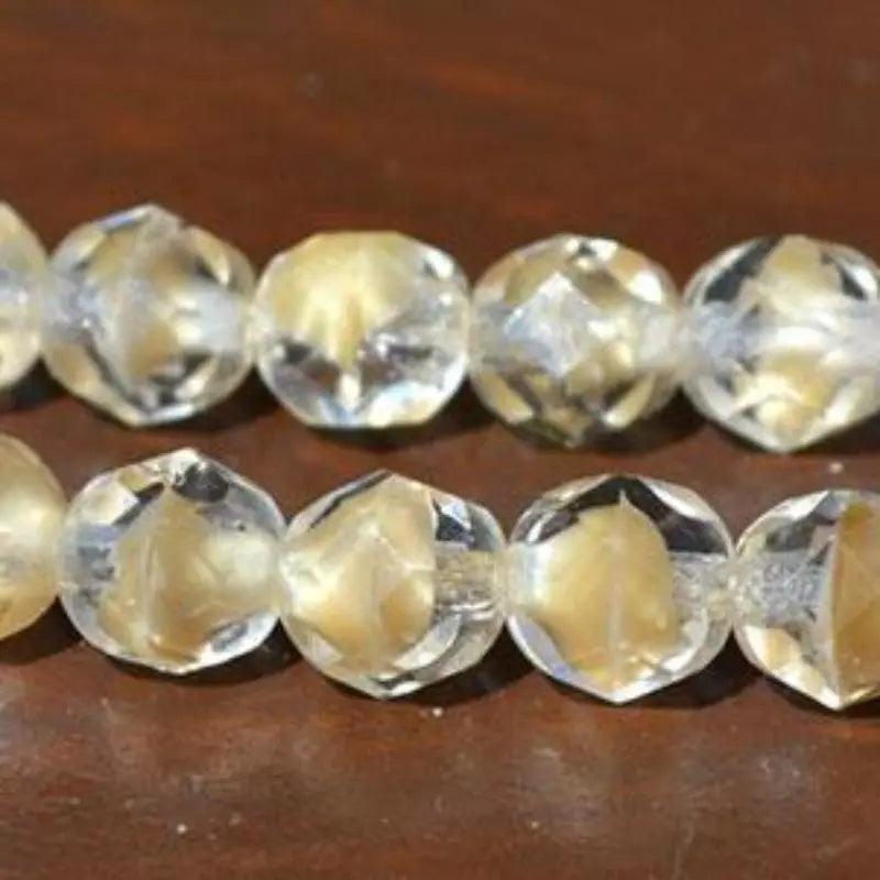 8 Vintage Beige White Givre German Faceted Glass Beads
