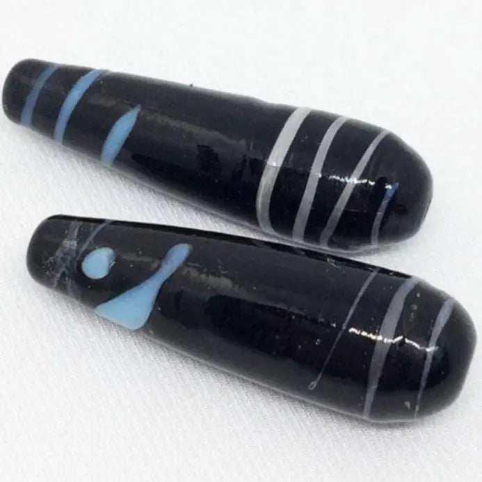 4 Vintage Black Large Teardrop Striped Glass Beads