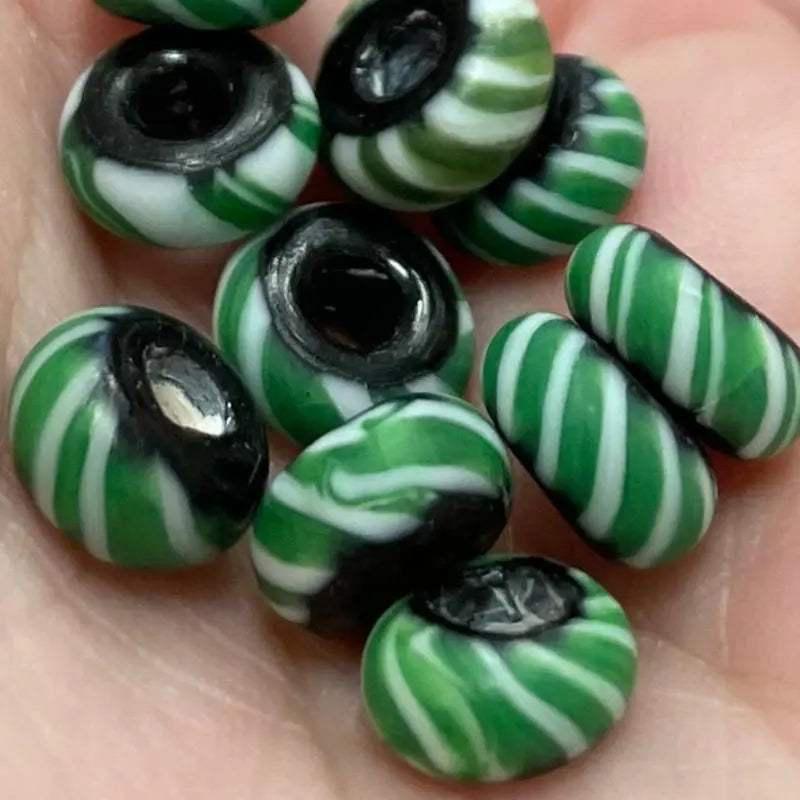 10 Vintage Black Textured Old Nailhead Glass Beads