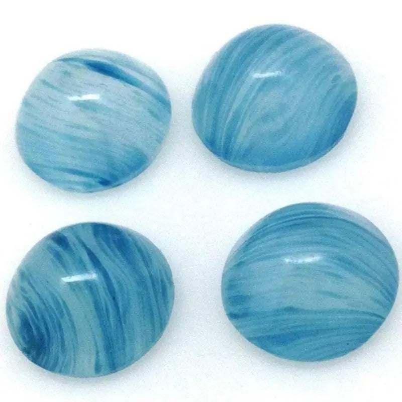 • 1 Vintage Blue Turquoise Japan Marbled Round Glass Cabochon - Sea Beads