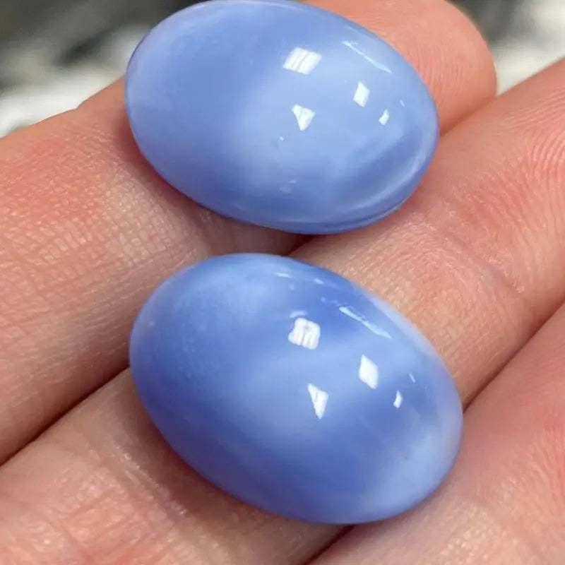 2 Vintage Blue Silky Oval Glass Cabochons