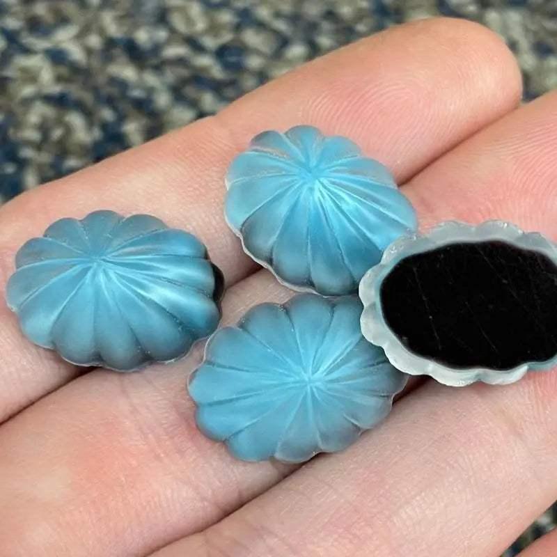 4 Vintage Blue Aqua German Matte Matte Glass Cabochons