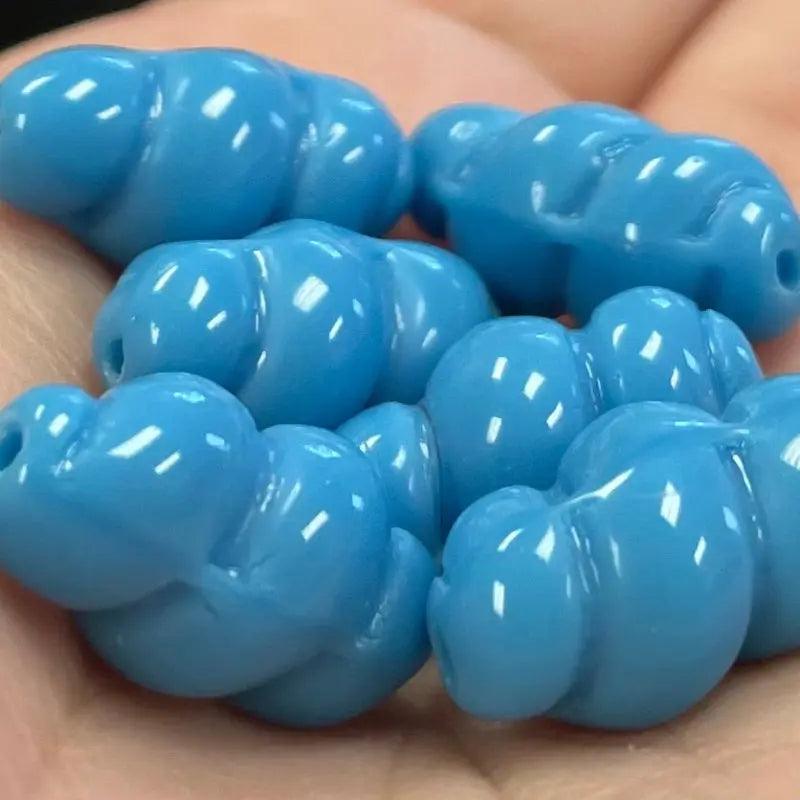 6 Vintage Blue Turquoise Dark Japan Twist Glass Beads