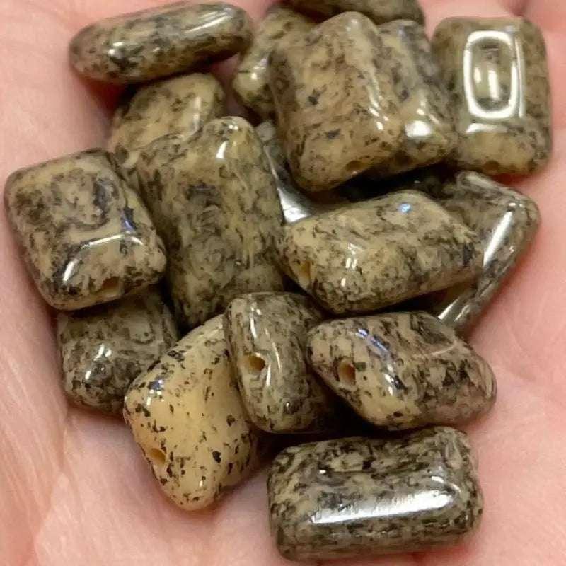 20 Vintage Tan Brown Picasso Rectangle Glass Beads