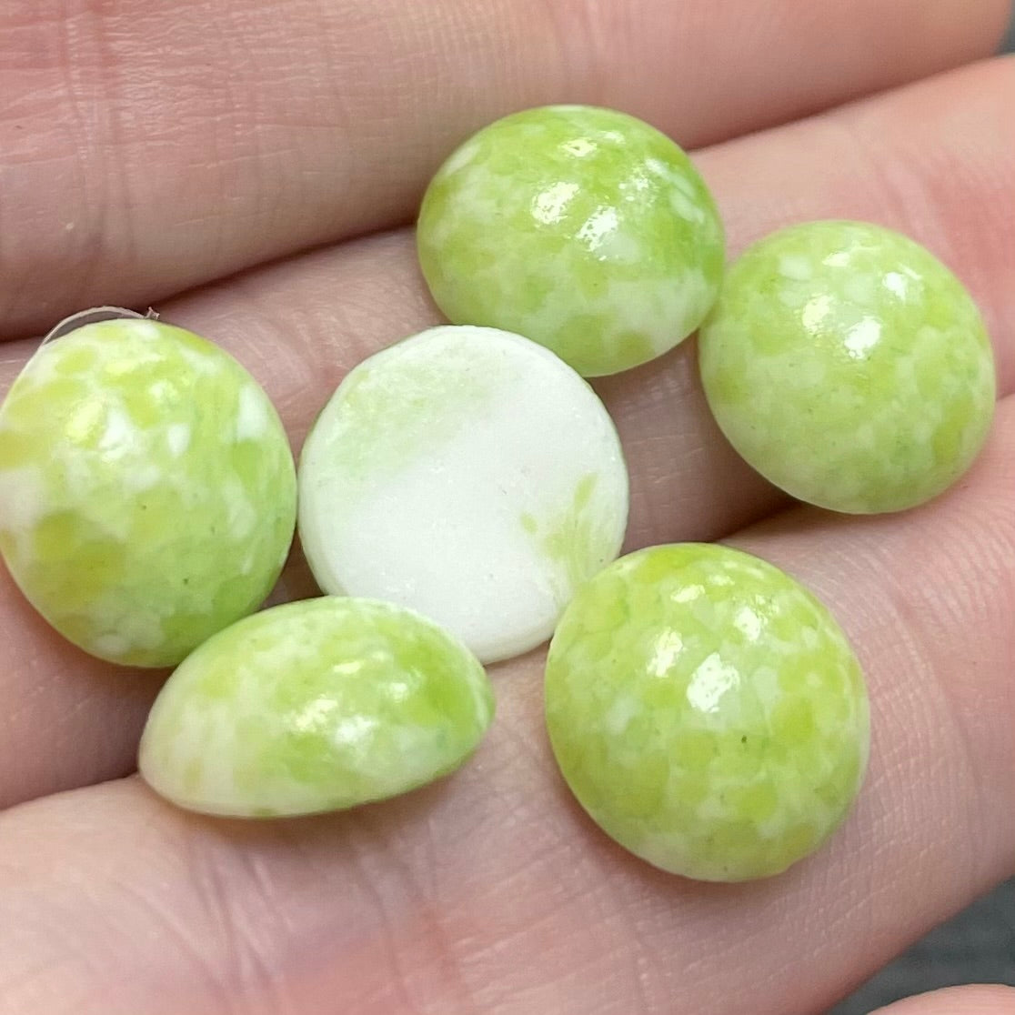6 Vintage Olive Light Japan Mottled Round Glass Cabochons