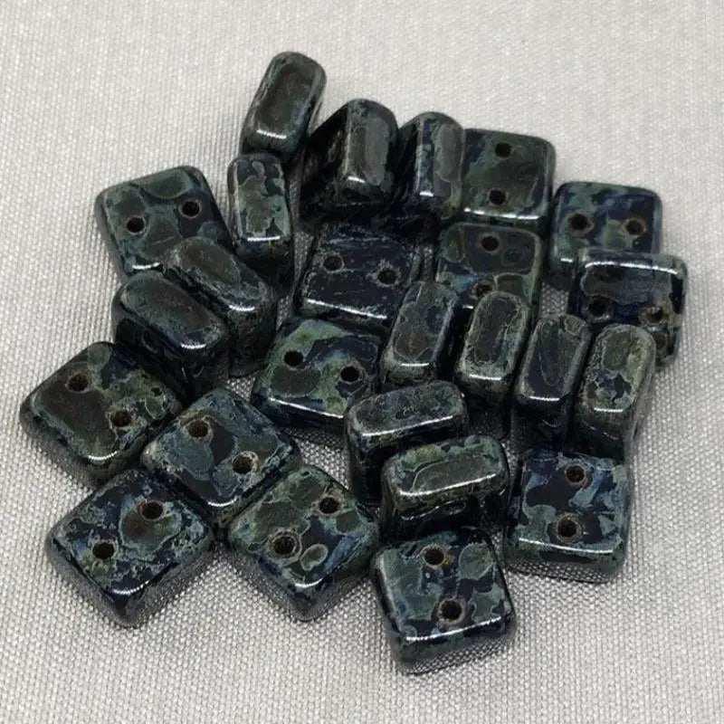 Elevate your craft projects with the distinctive beauty of our Black Czech Picasso Two Hole Chexx Square Glass Beads. Order yours today and start creating timeless pieces that showcase your unique style and creativity!
