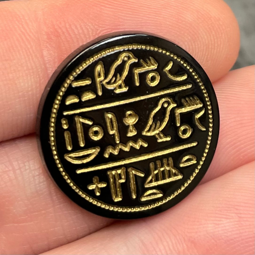 1 Vintage Black Egyptian Round Glass Round Glass Cabochon #9627