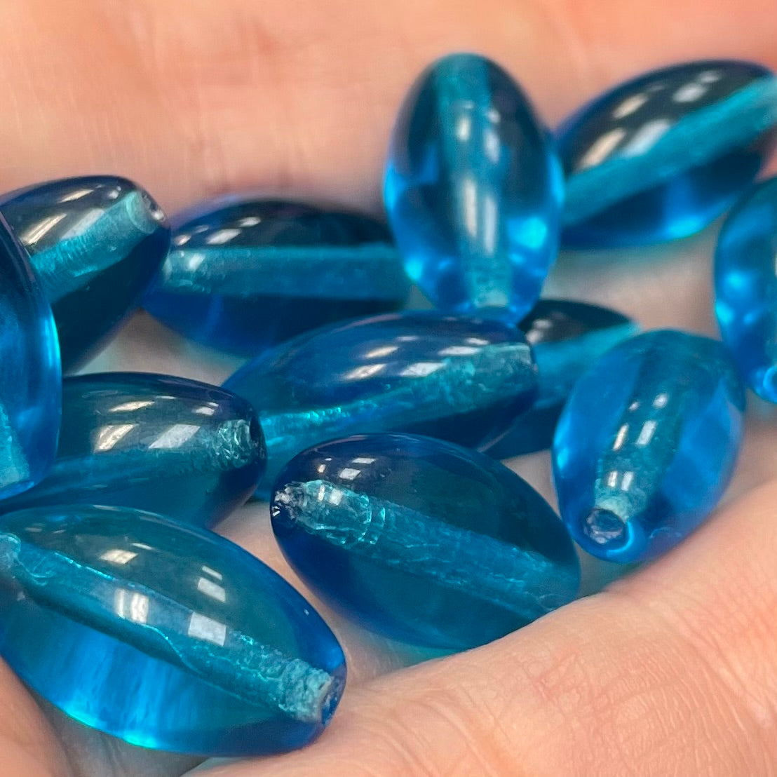 12 Vintage Dark Aqua Czech Oval Glass Beads