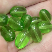 20 Vintage Transparent Green Czech Oval Glass Beads