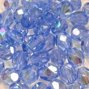 50 Blue Sapphire AB Czech Fire Polished Glass Beads