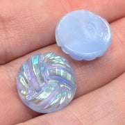 2 Vintage Blue German Knot Round Glass Cabochons