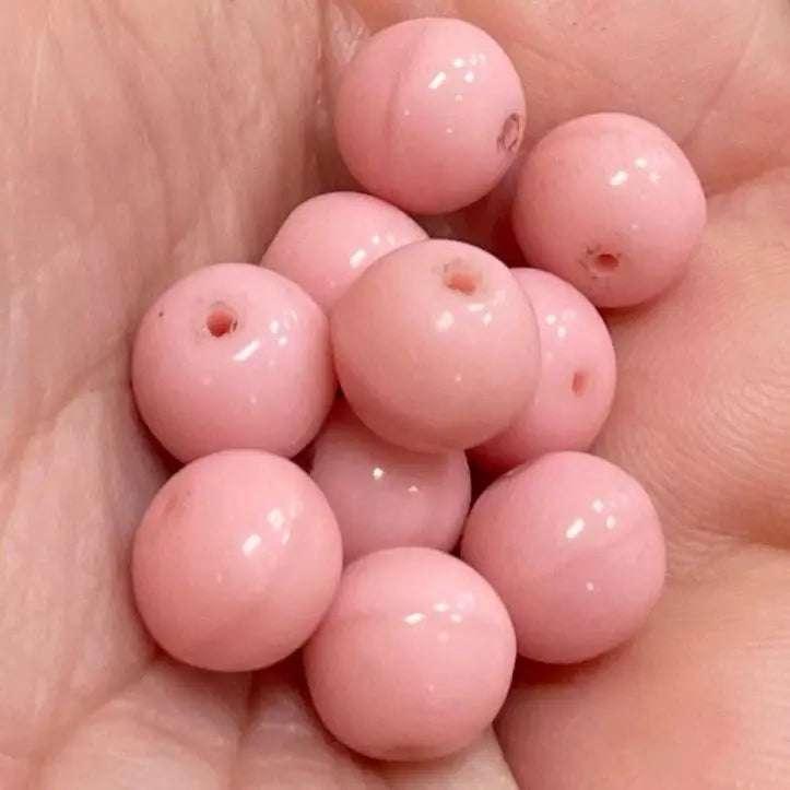 Each bead features a lovely vintage pink hue that captures the essence of classic aesthetics. Their round shape ensures versatility, making them ideal for creating necklaces, bracelets, earrings, and other accessories. With a diameter that allows for effortless threading, the Vintage Pink German Round Glass Beads can be paired with other materials or left to shine on their own, embodying a sophisticated yet playful charm.