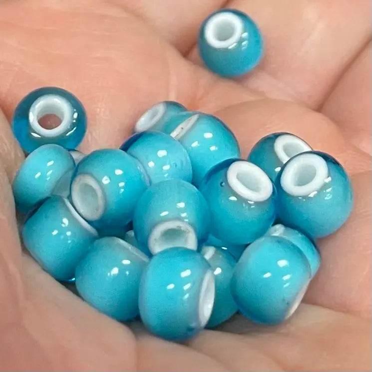 25 Vintage Blue Turquoise Italian White Heart Glass Beads