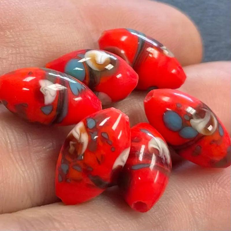 20 Vintage Opalescent Japan Dark Orange Glass Beads