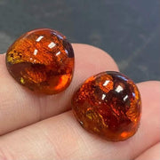 2 Vintage Amber Round Glass Cabochons