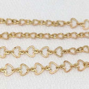 1 Foot Vintage Dainty Brass Heart Chain with 4mm heart links.
