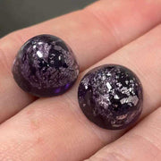 Violet flatback cabochon, dome top with silver foiling imbedded in each glass stone. Each cabochon is slightly different due to amount of silver foil. 13mm