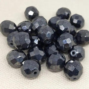 20 Vintage Gunmetal Czech Round Faceted Glass Beads