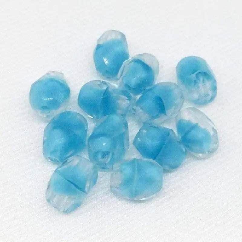 Lovely vintage clear turquoise blue German givre faceted oval glass beads.You will receive 12 beads measuring 8mm x 5mm. Made in the 1950's.Thank you for visiting my shop!