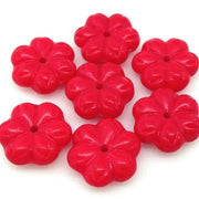 20 vintage red Czech flower glass beads, 12x5mm, with etched detail.