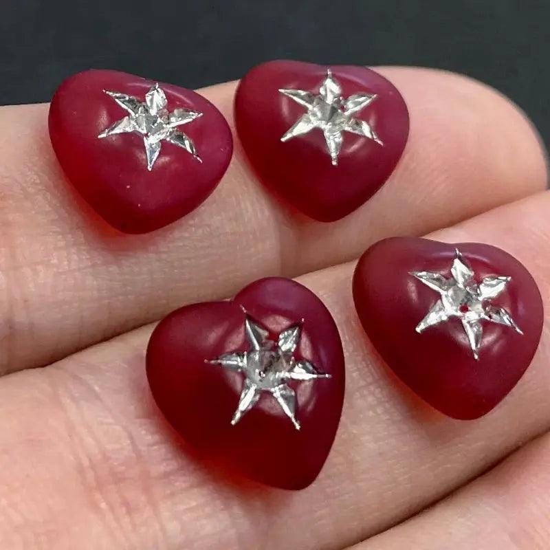 Increase quantity for 4 Vintage Red Heart Star Matte Glass Stones