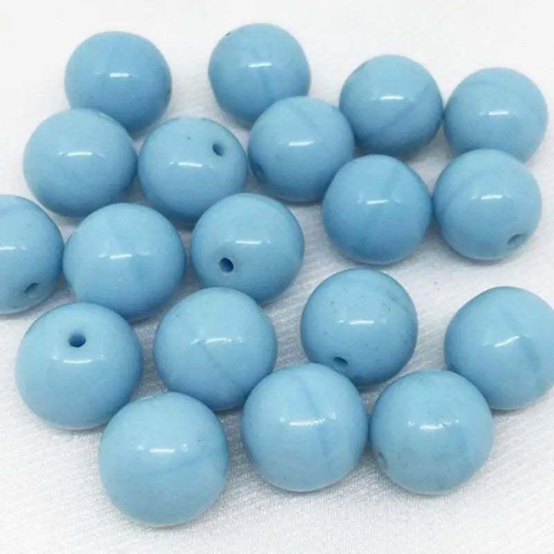 10 Vintage Blue Denim Czech Picasso Round Glass Beads
