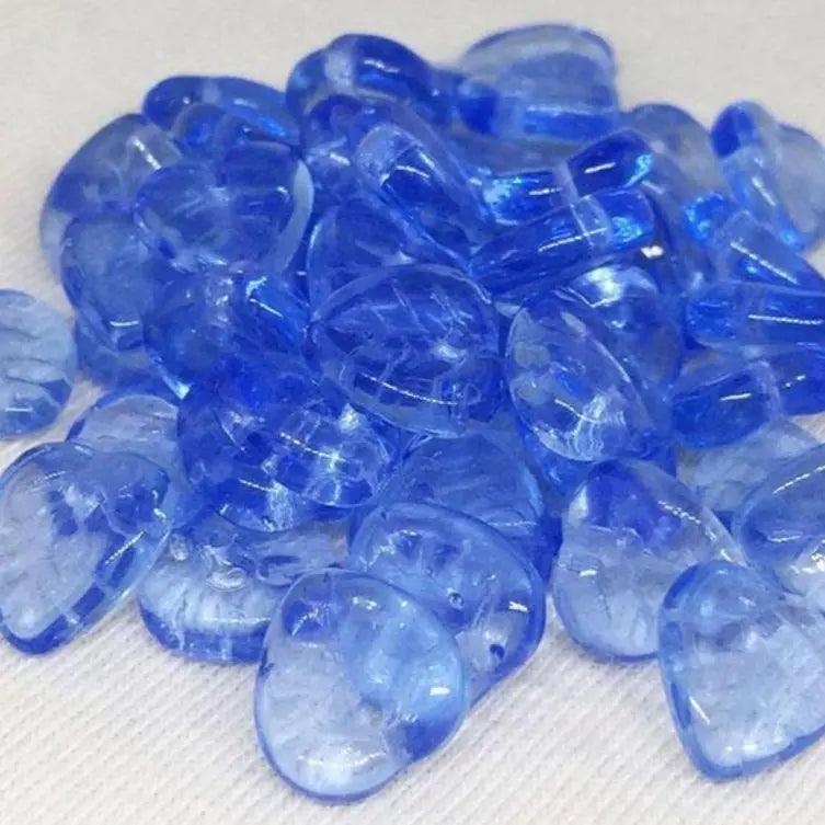 25 Vintage Blue Czech Opaque Heart Glass Beads