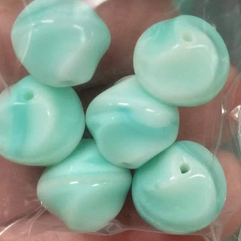 6 Vintage Green Teal Grey German Givre Glass Beads