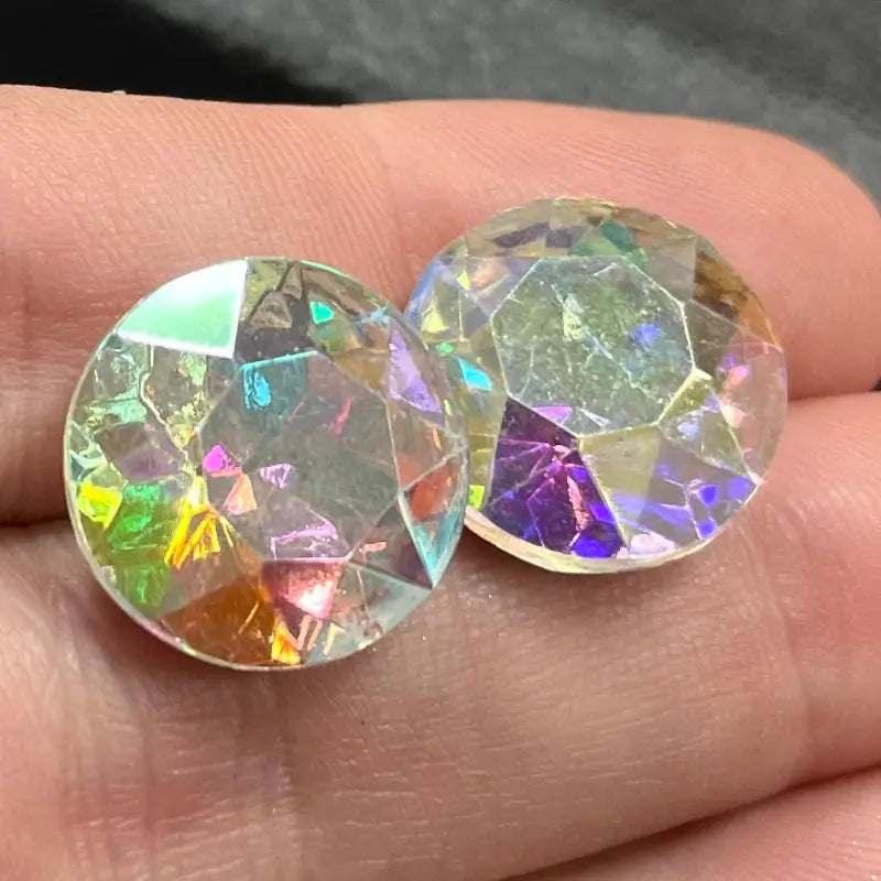 8 Vintage Green AB German Faceted Oval Glass Beads