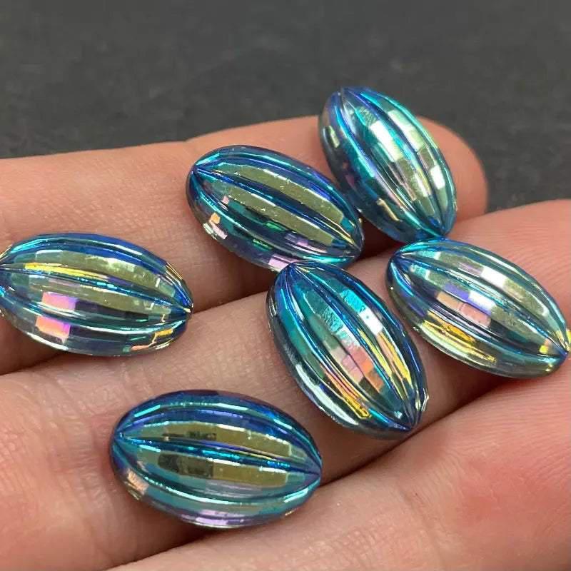 6 Vintage Blue Iris Ribbed Oval Glass Cabochons