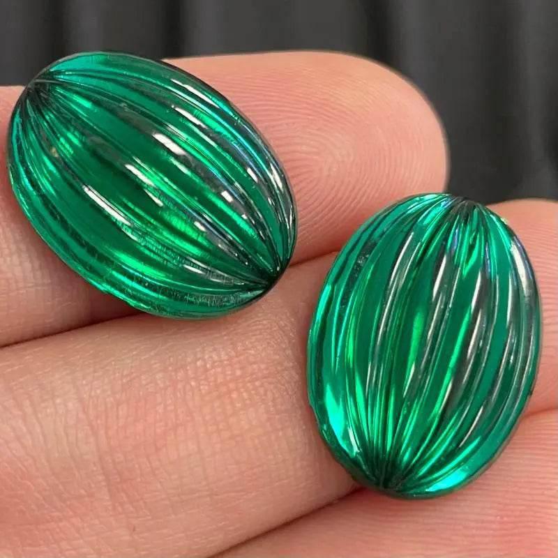 6 Vintage Green Emerald Faceted Oval Glass Stones