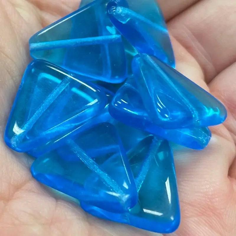 25 Vintage Blue Capri Light Czech Triangle Glass Beads
