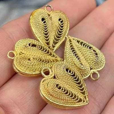 4 Vintage Gold Plated Puffed Filigree Heart Charms