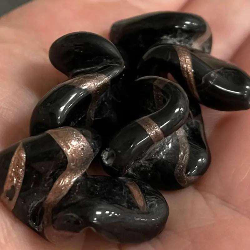 • 4 Vintage Black Wavy Large Black Baroque Glass Beads - Sea Beads
