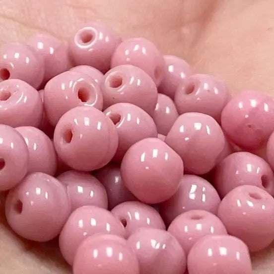 100 Vintage Pink Czech Opaque Rose Round Glass Beads