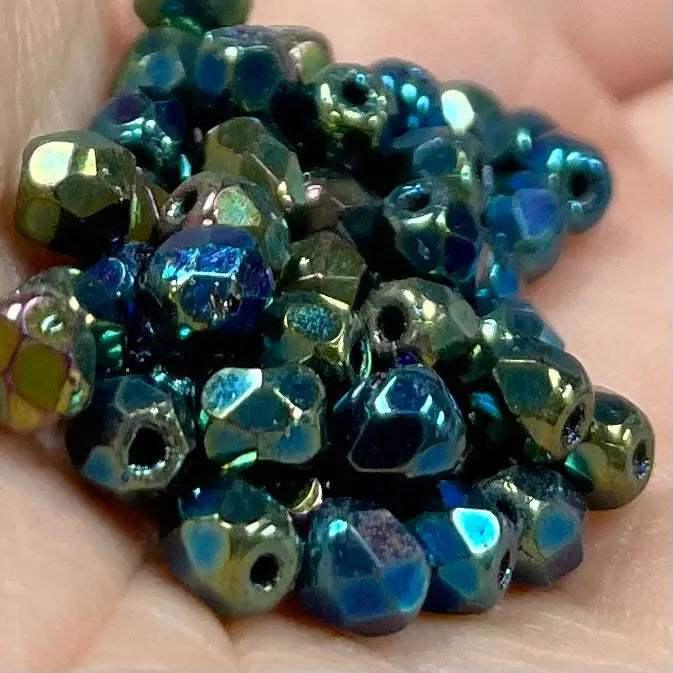 50 Vintage Iris Green Czech Faceted Glass Beads
