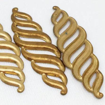 6 Vintage Brass Elongated Spiral Metal Stampings