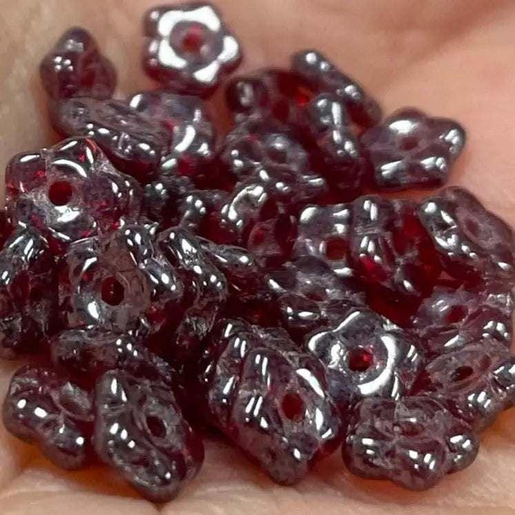50 Red Ruby Czech Luster Dainty Flower Glass Beads