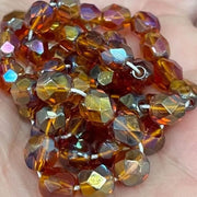 50 Amber AB Czech Fire Polished Glass Beads