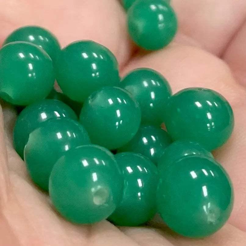 20 Vintage Green Jade Japan Opal Round Glass Beads
