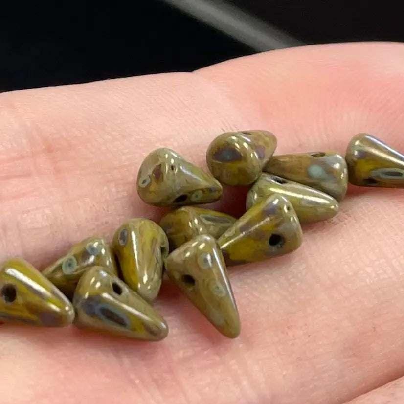 Sale12 Blue Turquoise Green Picasso Czech Opal Spike Glass Beads$2.70$2.70$4.50Unit price / per